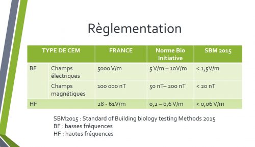 Nous vous conseillons d’appliquer les recommandations du rapport BioInitiative. Les recommandations SBM 2015 allemande doivent être suivies en cas d’EHS (ou de SICEM) car la norme française est trop permissive. Bref, elle ne vous protège pas comme l’indiquent différents rapports officiels européens qui recommandent fortement de réévaluer les valeurs d’exposition, jugées trop élevées.